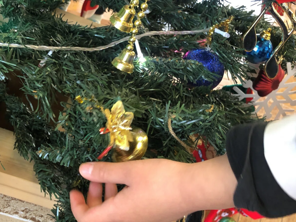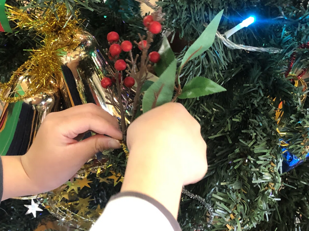 ツリーを前にすると、飾りをつける人、全体を見て考える人、そっと手を伸ばす人……。誰かが役割を決めなくても、自然と動きが分かれていきます。