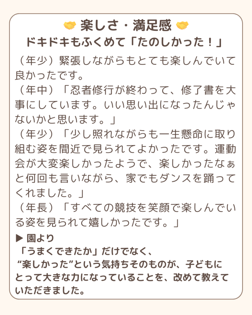 ドキドキも笑顔も、ぜんぶ含めて「楽しかった」(保護者の声)