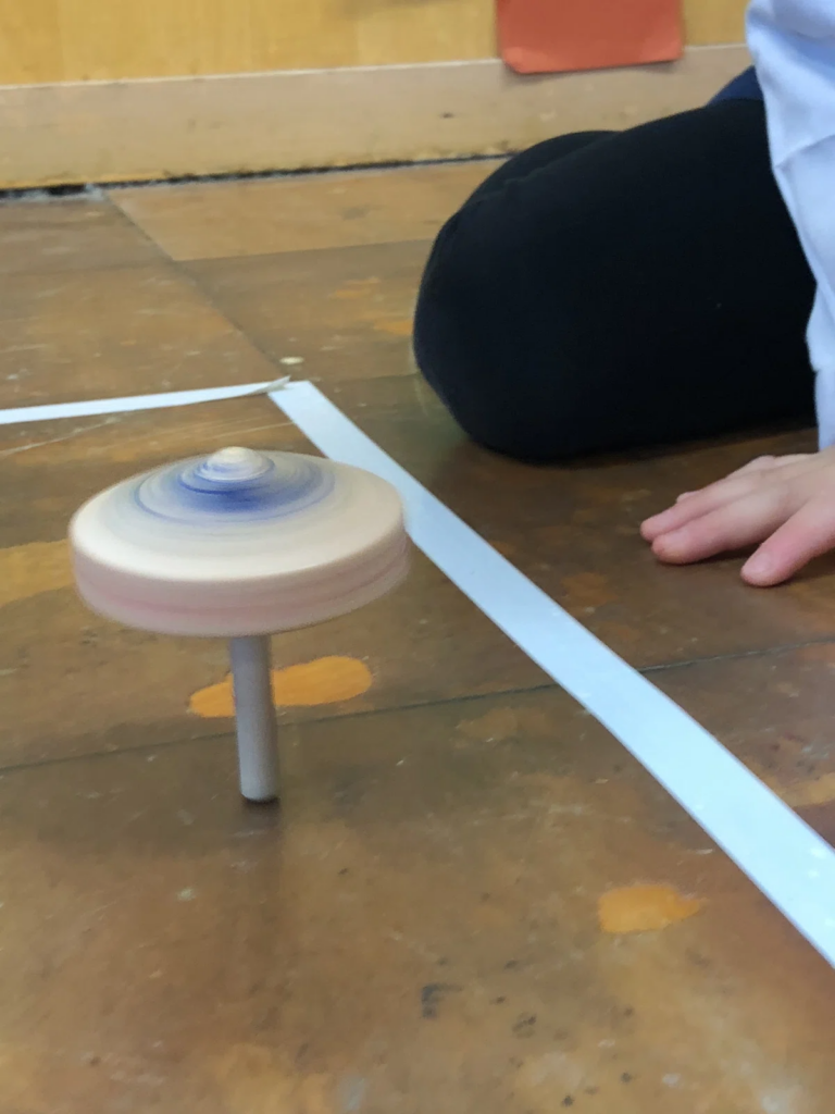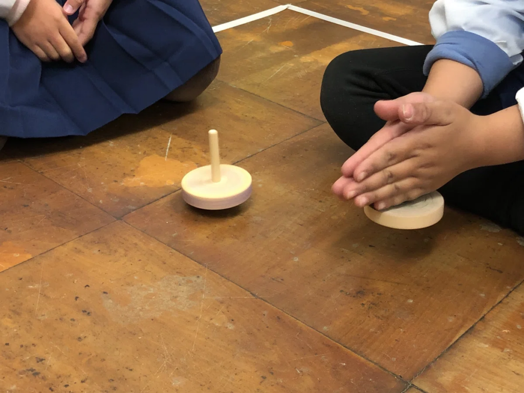 12月のクリスマス会でサンタさんからプレゼントされた「コマ」。これが、子どもたちの小さな探究心に火をつけました。
