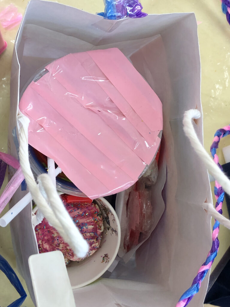 そんな言葉をつぶやきながら、箱やカップ、毛糸やリボンを手にとり、自分のイメージを形にしていきます。ふたの留め方、飾りの位置、色の組み合わせ。小さな指先で細かなところまで丁寧に作り込む姿からは、「本当に渡したい」「本物みたいにしたい」という、相手を思うあたたかな気持ちが伝わってきます。