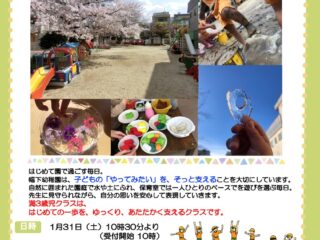 幅下幼稚園 プレ教室「ふたば」体験会のお知らせ 遊びは学び!最初の一歩。幅下幼稚園では、未就園のお子様と保護者の方を対象としたプレ教室「ふたば(親子教室)」の体験会を開催いたします。 対象 令和5年4月2日~令和6年4月 […]